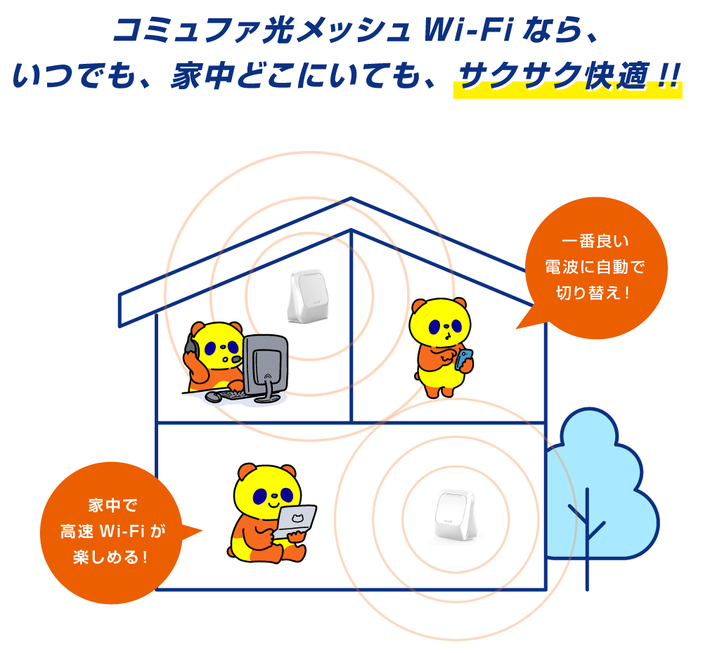 • ※メッシュWi-Fiサービスは、Myコミュファログイン後、お申し込みやご解約手続きが可能です。
